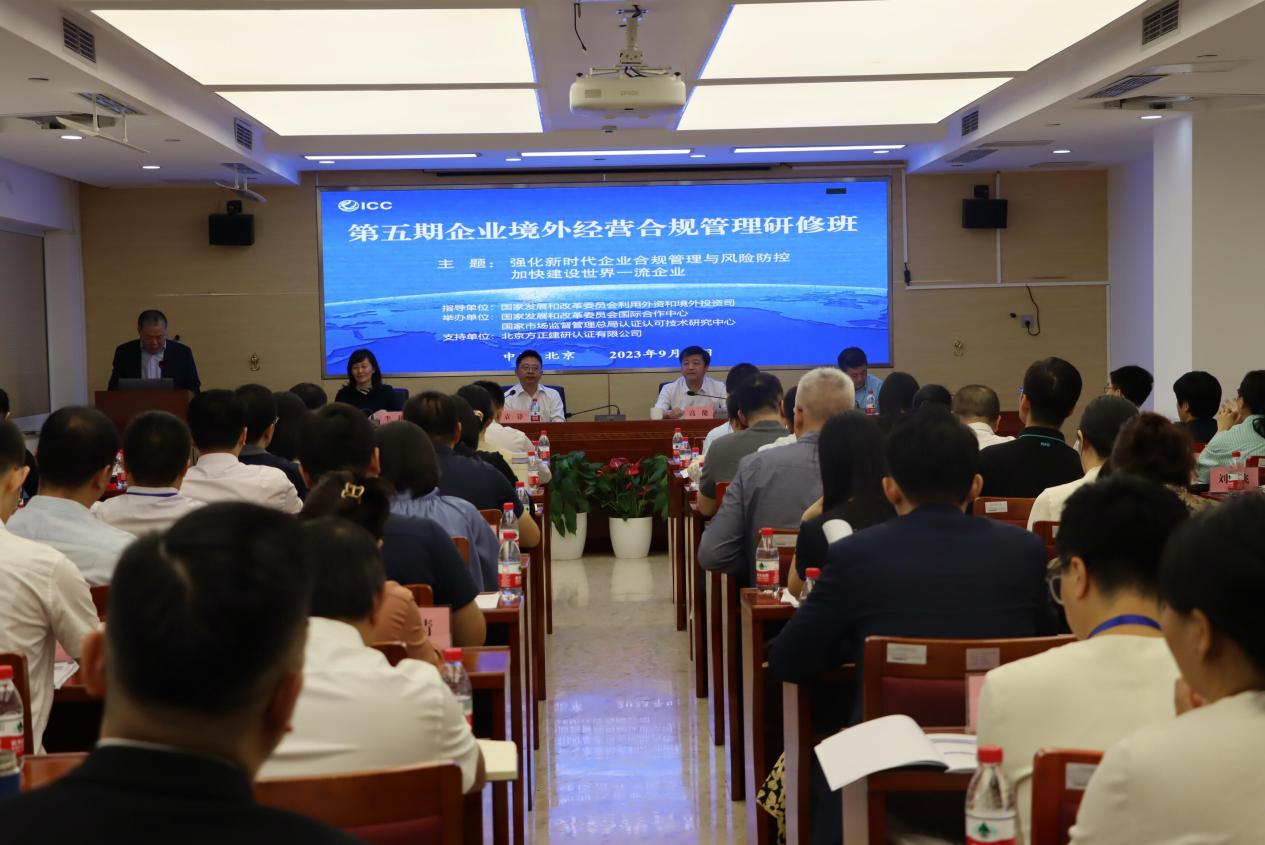 2023年9月23日,由国家发展改革委外资司指导、国家发展改革委国际合作中心和国家市场监督管理总局认证认可技术研究中心共同举办、北京方正建研认证有限公司支持的第五期企业境外经营合规管理研修班在京举办。