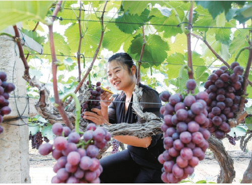游客在成子湖社区果园里体验采摘的乐趣(资料图)