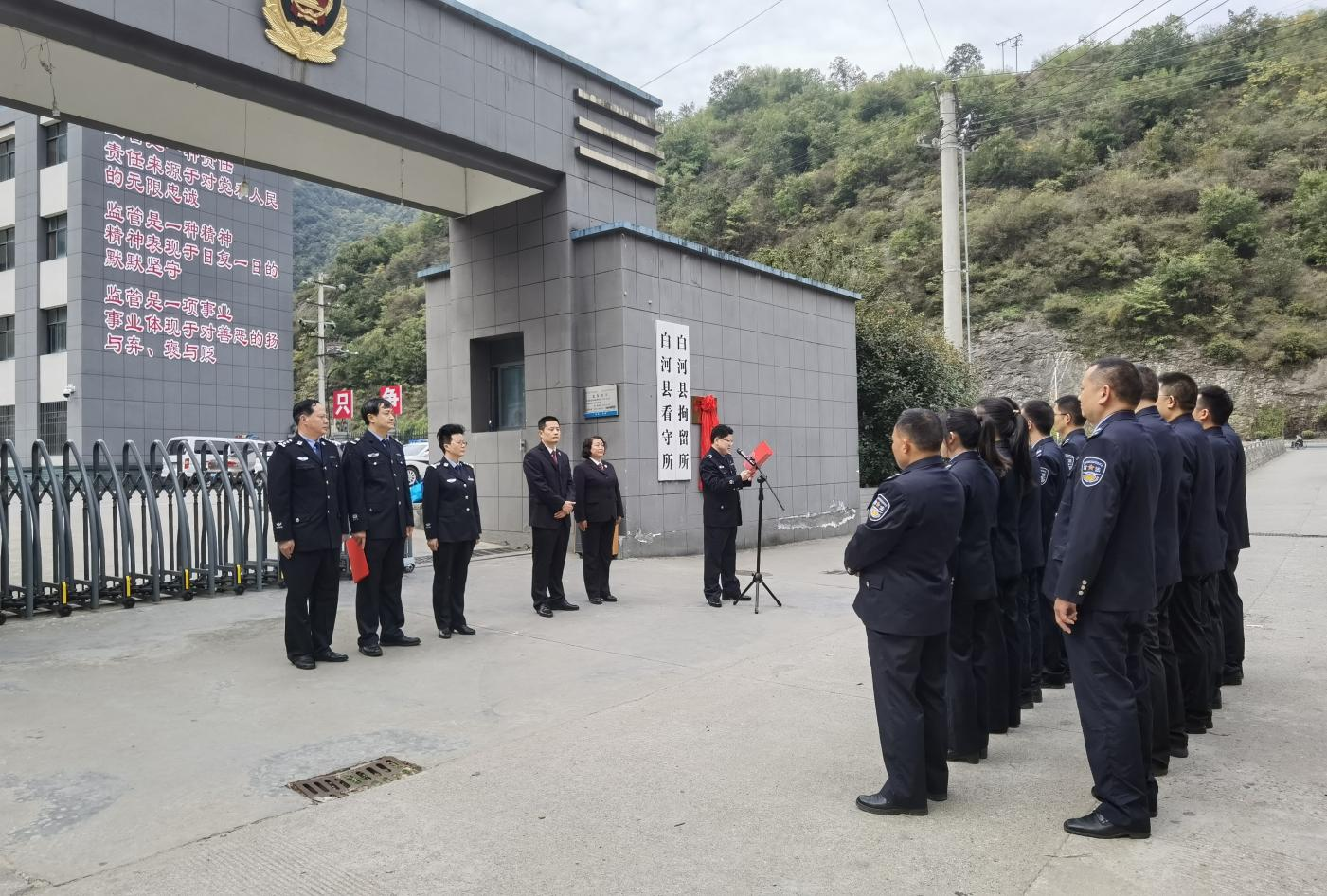 为进一步丰富社区矫正教育矫治形式,提升社区矫正工作质效,维护社会稳定,10月25日,陕西省安康市白河县人民检察院助推建立的该县第一个社区矫正警示教育基地在县看守所揭牌成立,该县公安局副局长程文晓、县检察院副检察长祝军、县司法局局长丁衍明等参加揭牌仪式。