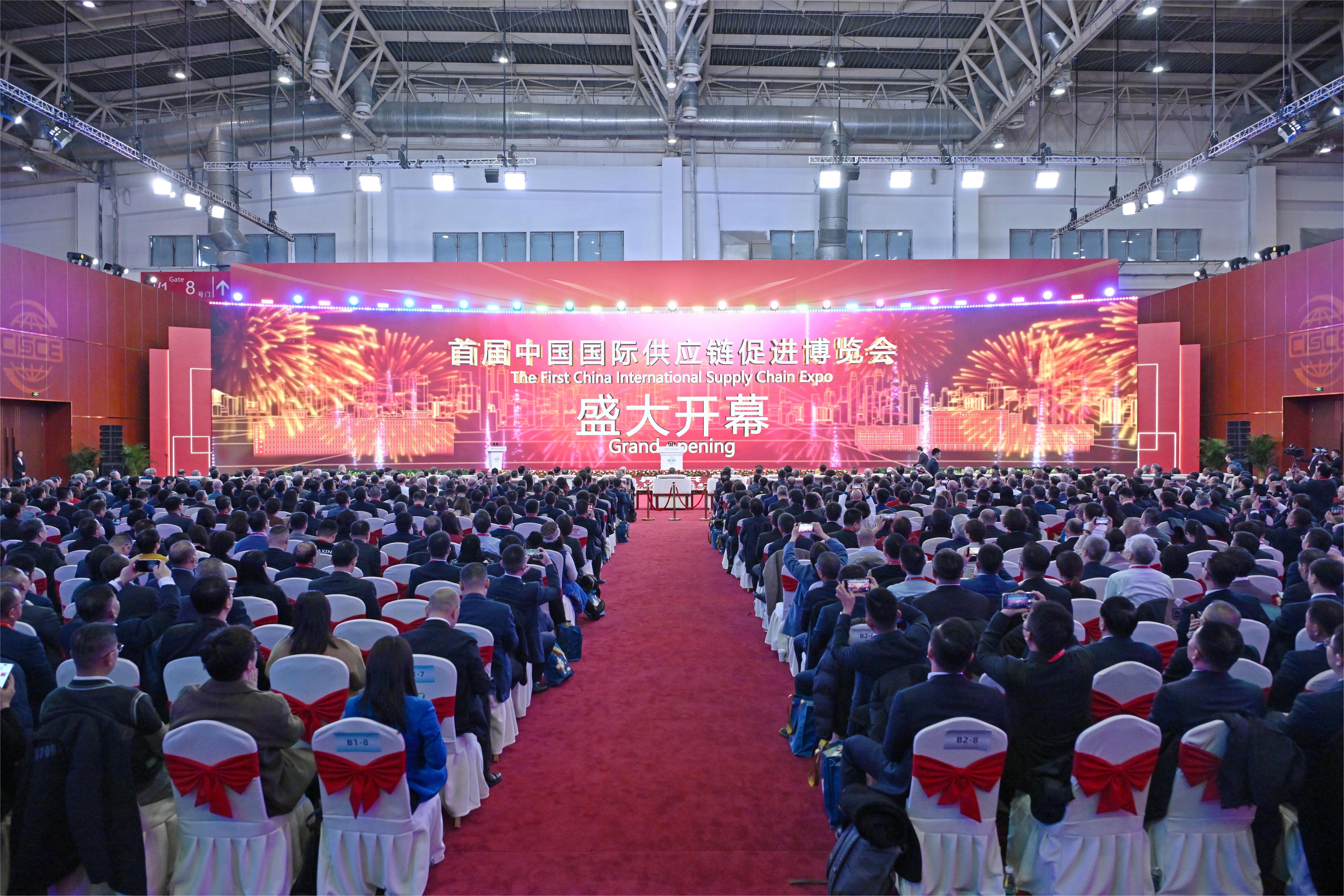 11月28日,首届中国国际供应链促进博览会(以下简称“链博会”)开幕式暨全球供应链创新发展论坛在北京举办。来自世界90多个国家、地区和国际组织的政商学等各界代表1100多人出席开幕式。