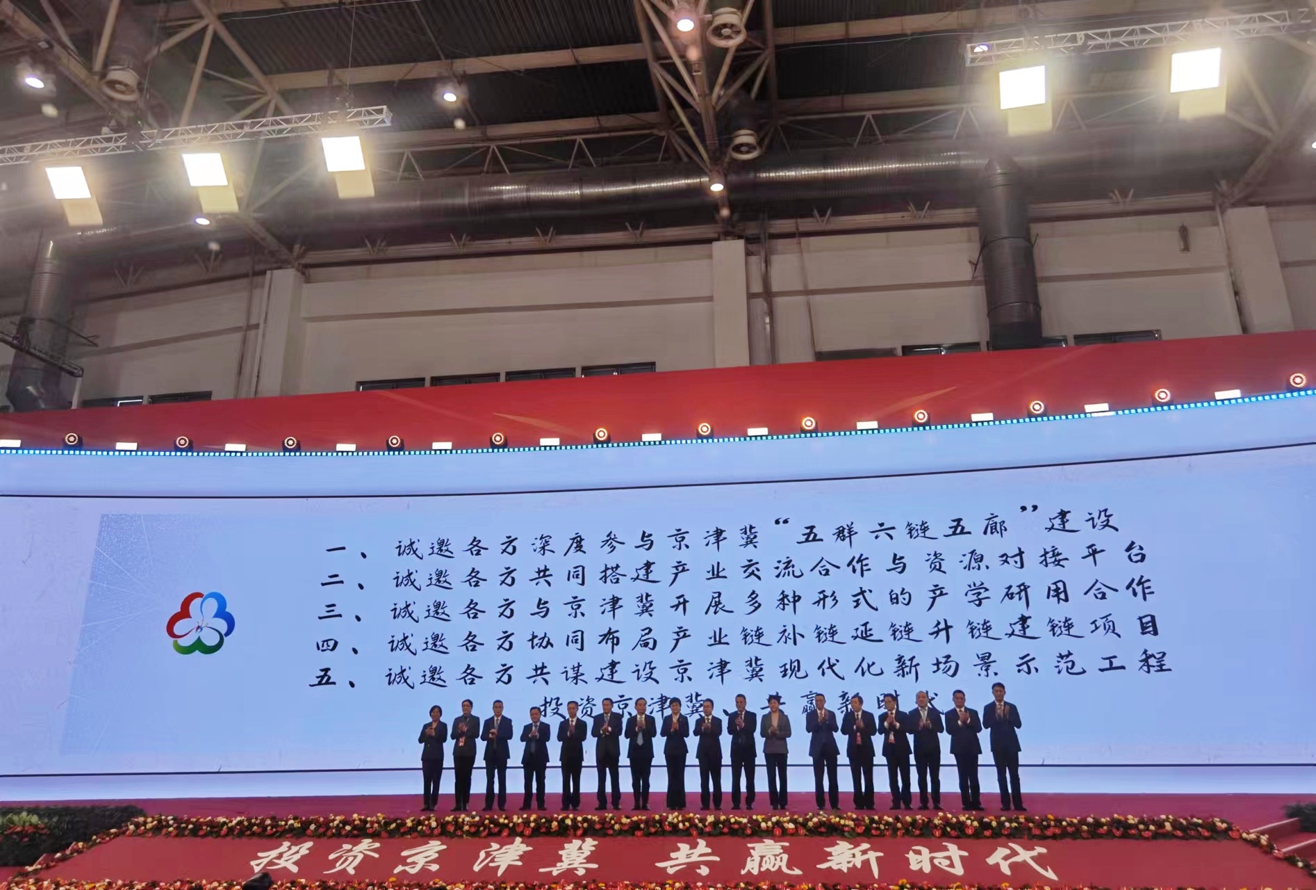 在主题推介环节,大会发布了“五群六链五廊”的京津冀产业协同发展新图景。首次发布了氢能、生物医药、工业互联网、高端工业母机、新能源和智能网联汽车、机器人等六大跨区域产业链图谱,成为投资京津冀的指南针和导航图,助力构建区域创新链、产业链、供应链深度融合新体系。氢能围绕制氢、储运、加注和应用四个环节,打造全球新能源风向标;生物医药聚焦从研发、临床、制造到应用的全链条,打造具有全球影响力的生物医药产业协同创新发展的策源地;工业互联网统筹推进基础设施、基础软件、终端应用全链创新,打造工业互联网平台赋能高地;高端工业母机围绕高档数控机床、增材制造装备、特种机床等整机制造及配套零部件,实现高端化、自主化发展;新能源和智能网联汽车构建从感知系统、控制系统、通讯系统、执行系统、三电系统到整车制造的全产业链体系;机器人围绕核心零部件、配套部件及算法模块、机器人本体、系统集成等环节,打造全球机器人技术创新策源地、应用示范高地和高端制造集聚区。