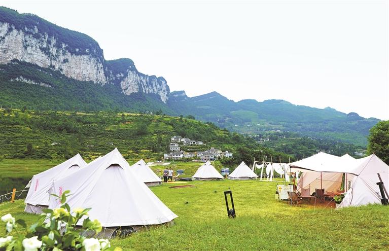 据了解,在过去很长一段时间,三合村一直靠山吃山。但在2021年,“90后”驻村第一书记岳汉驻扎三合村后,年轻的发展思维为这个村庄注入了发展活力。岳汉依托地理优势,通过与经营主体联系,开发了滑翔伞和露营两大项目,在旅游公司的专业运作下,露营基地和航空运动基地很快打响名气,为当地带来较为丰厚的收益。