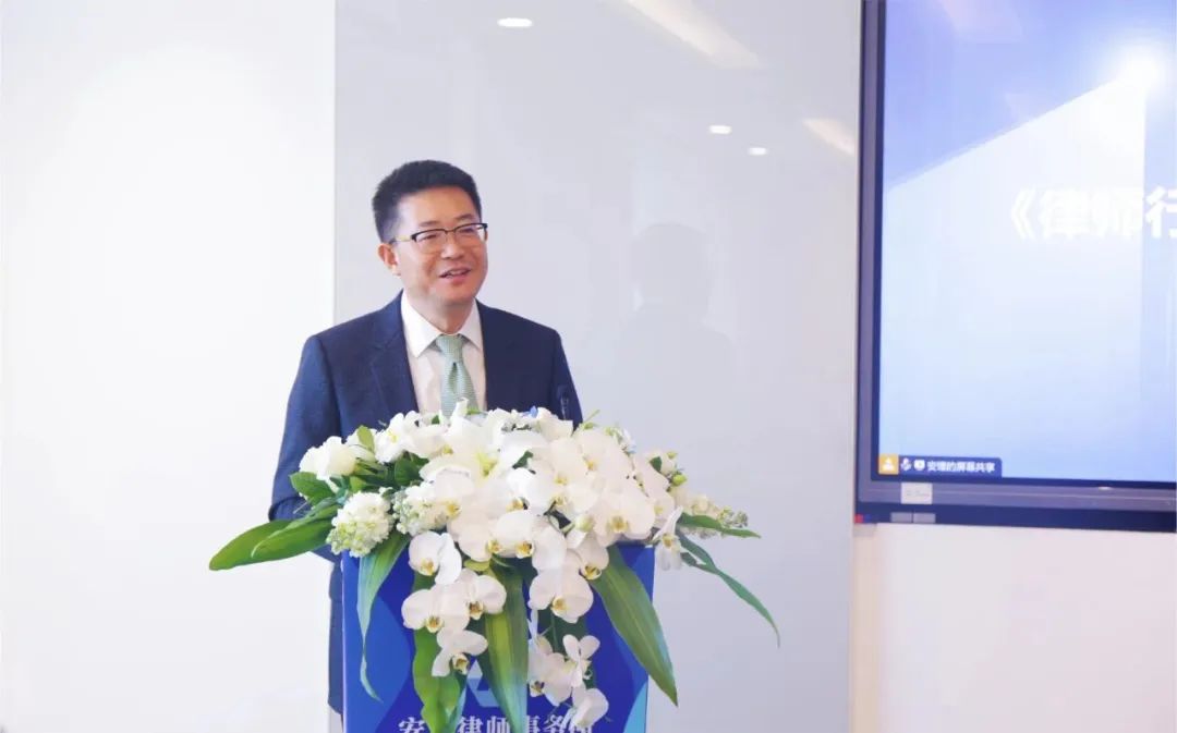 安理管委会主任孟冰律师代表安理进行开营致辞。他谈到,安理高度重视青年律师培养,安理青训营也秉持助力行业协同发展的初衷而不断完善升级。希望大家都能认真学习,有所收获。