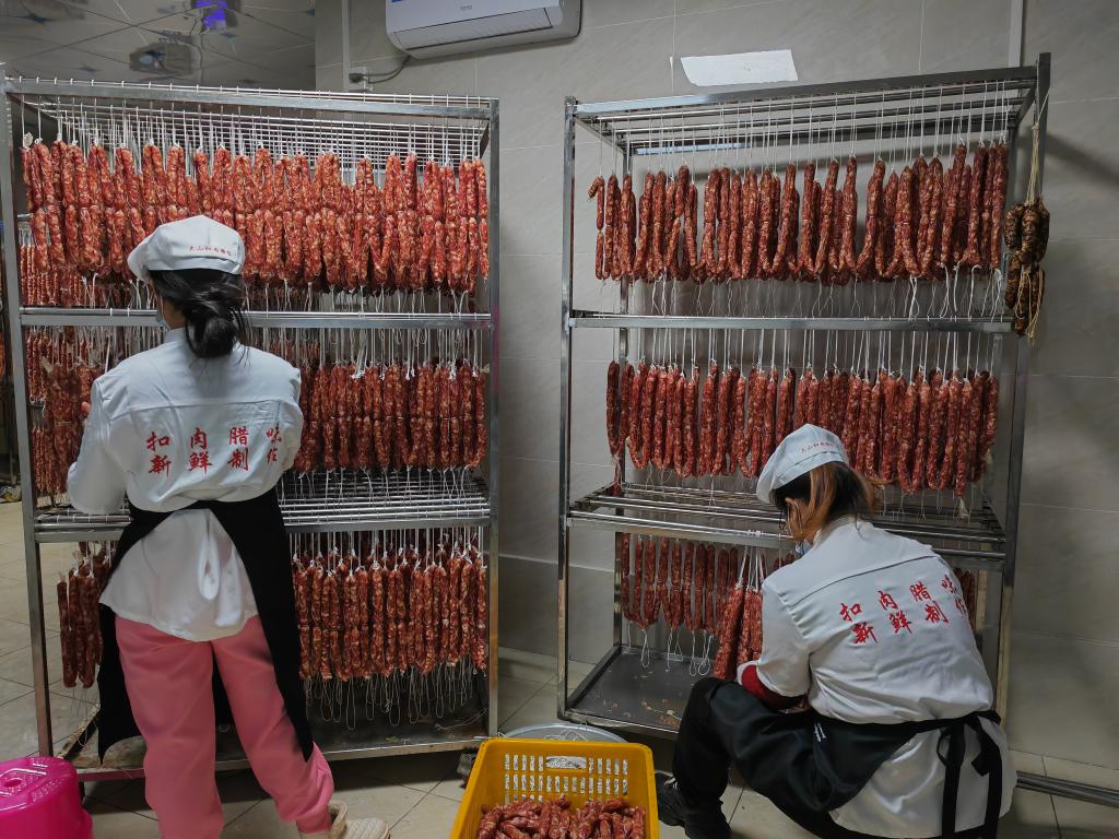 做好土特产文章,发展特色产业是实现乡村振兴的一条重要途径。在陆川县,当地围绕国家地理标志产品陆川猪不断助推村民致富增收。切割、生产、烘干、包装……在位于陆川县珊罗镇大山村的玉林市浚淇食品有限公司,工人们正忙着生产和包装腊肠。“年关将至,腊肉、腊肠、扣肉的生产也迎来旺季。”公司负责人梁沪芳说。