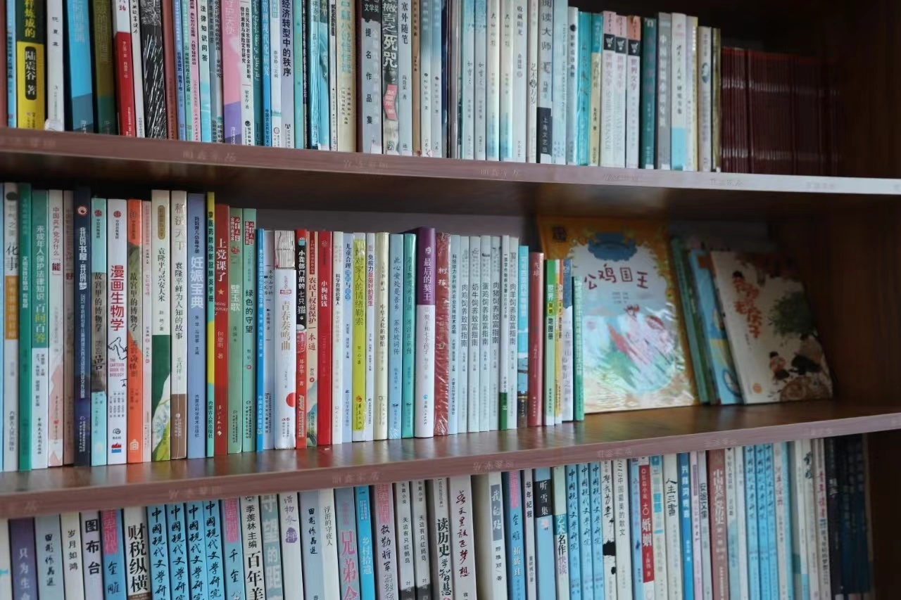 草原书屋内,丰富的图书摆满书架 赵洹 摄