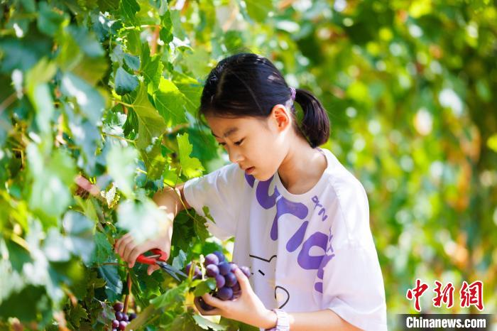 2023年9月,葡萄丰收时,游客前来采摘葡萄(资料图)乌力更 摄