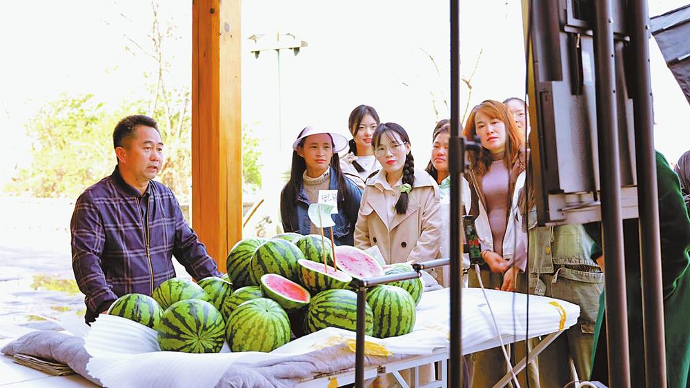 在腊勐镇大垭口社区,电商培训也开展得有声有色。各种应季特色农产品被摆在直播间,学员们开始上线试播。