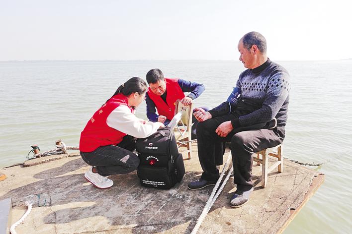 村医上船为渔民检查身体 通讯员 王应平 摄