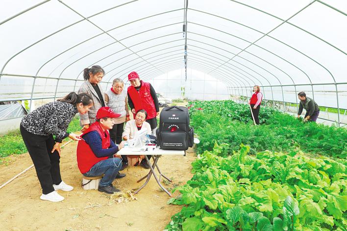 有了“行走的医院”助诊包,应城村医在蔬菜大棚里也能看病 通讯员 黎财雄 摄