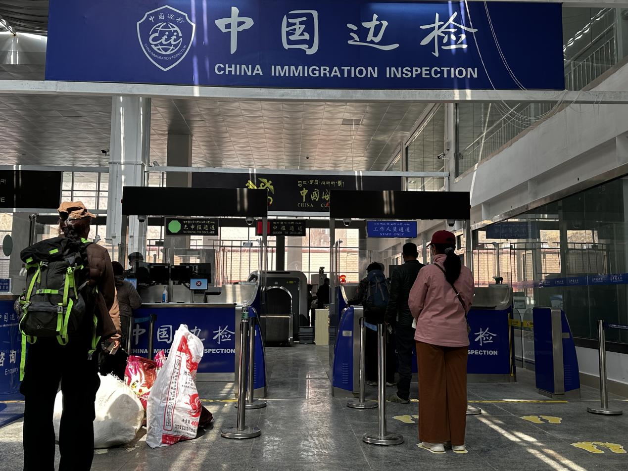 上午10时,普兰口岸联检大厅内排起了出入境旅客边民的长队,普兰出入境边防检查站移民管理警察们正忙碌着验放游客。他们分工明确、工作紧张有序,通关服务顺畅高效。