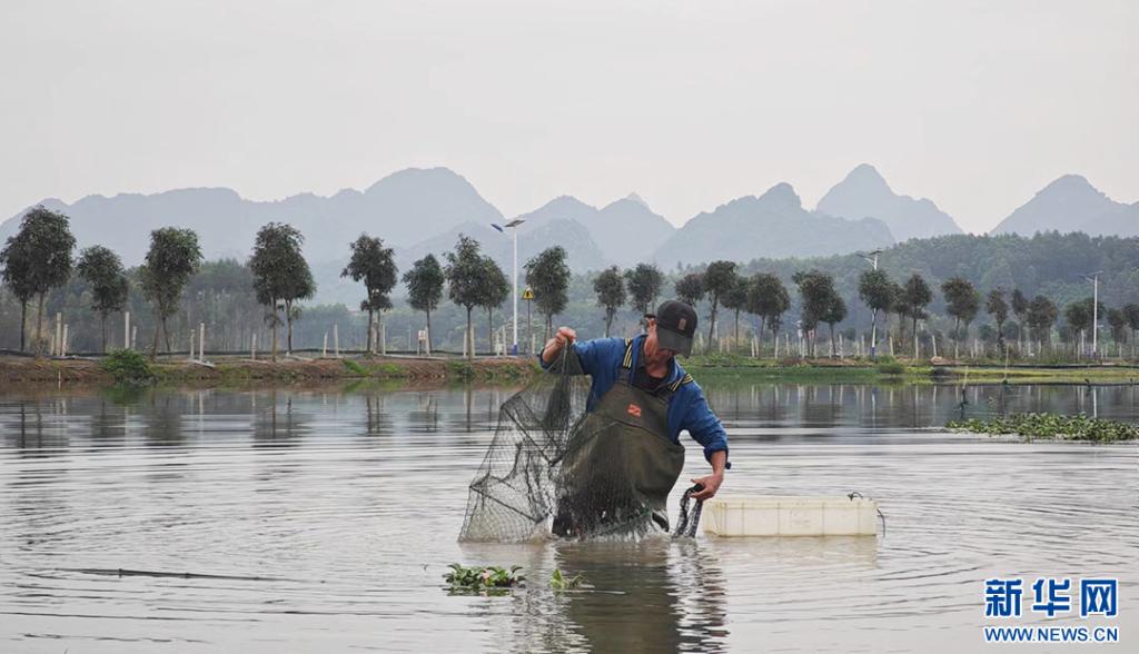 “种稻不仅得稻,还能得虾得鱼”在兴宾区稻渔综合种养万亩核心示范区,农户从稻田里拉起地笼,一只只活蹦乱跳的小龙虾顺势滚进篮筐,收购商与工人们一起将小龙虾入筐、挑选、称重,销往全国各地,走上千家万户的餐桌。