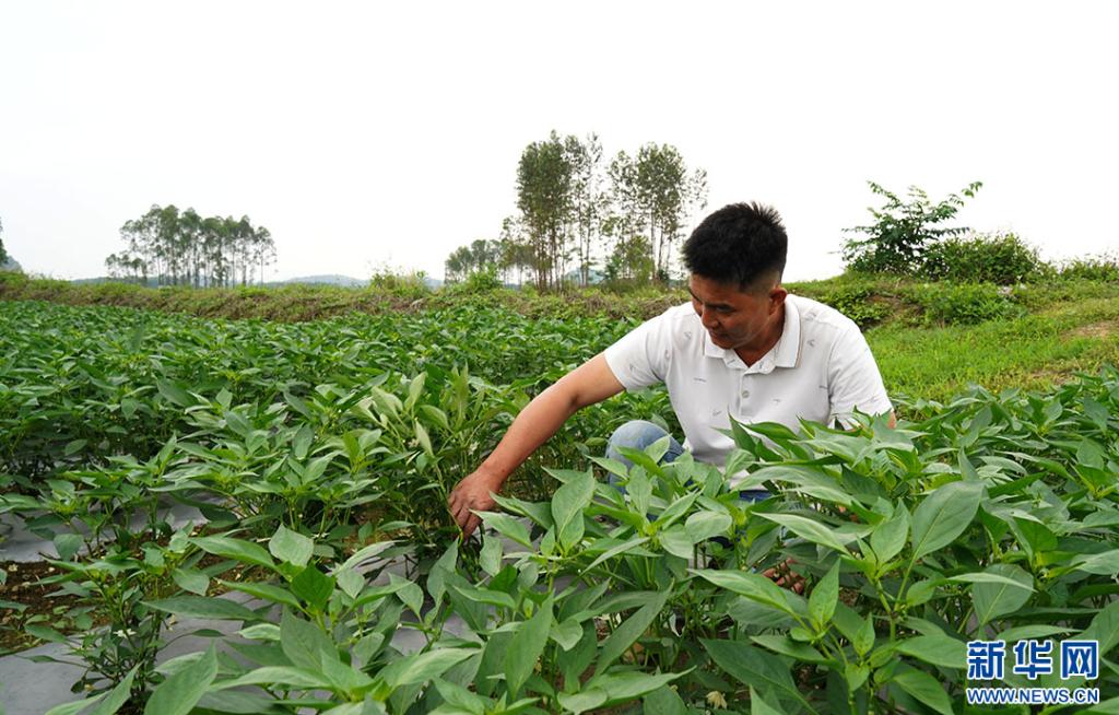 春季的辣椒田绿意盎然,小小辣椒缀满枝头。兴宾区良江镇龙安村的辣椒种植基地负责人张照也在田地里忙碌,他和村民将采摘下来的辣椒进行打包,准备装车。