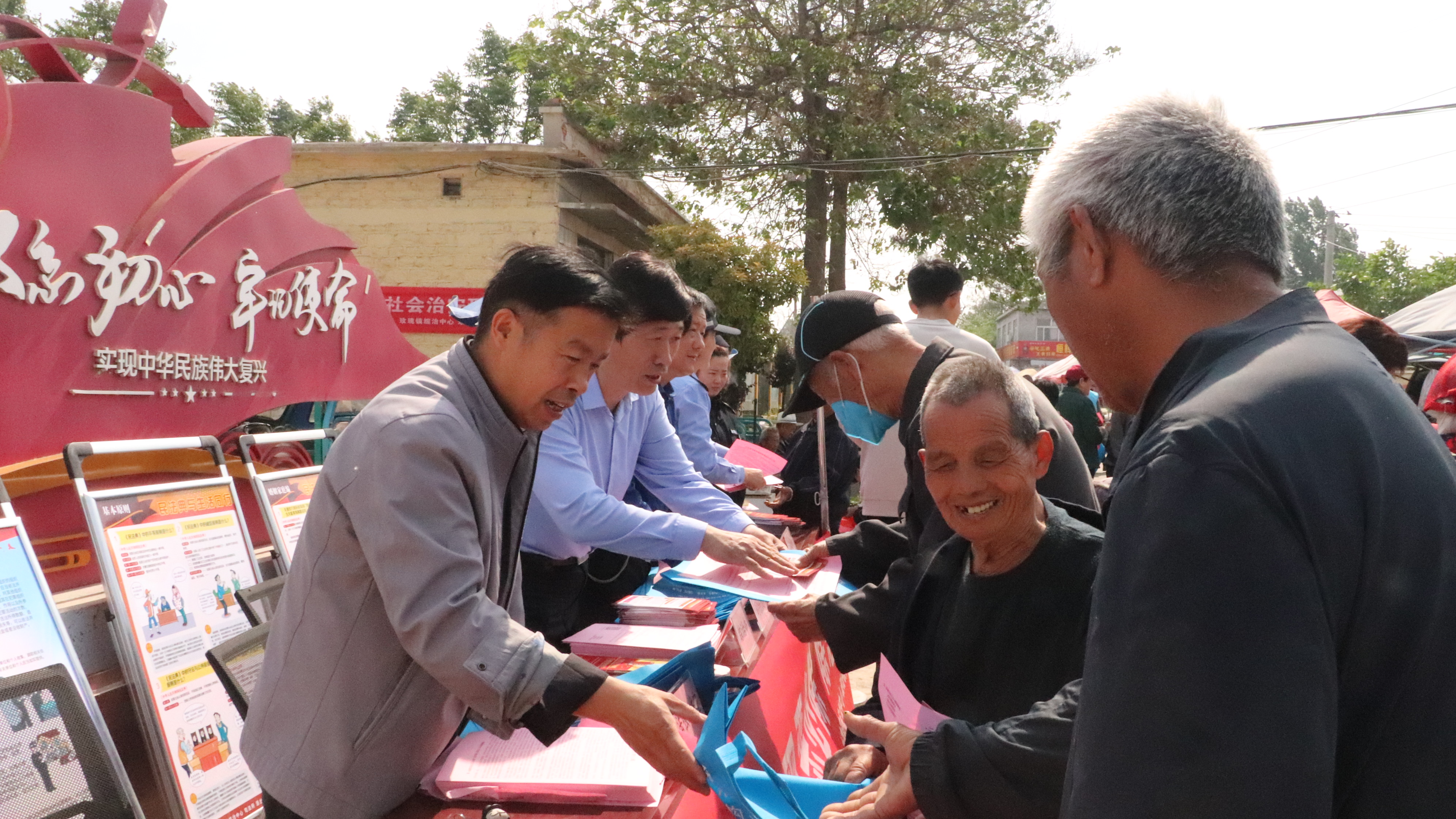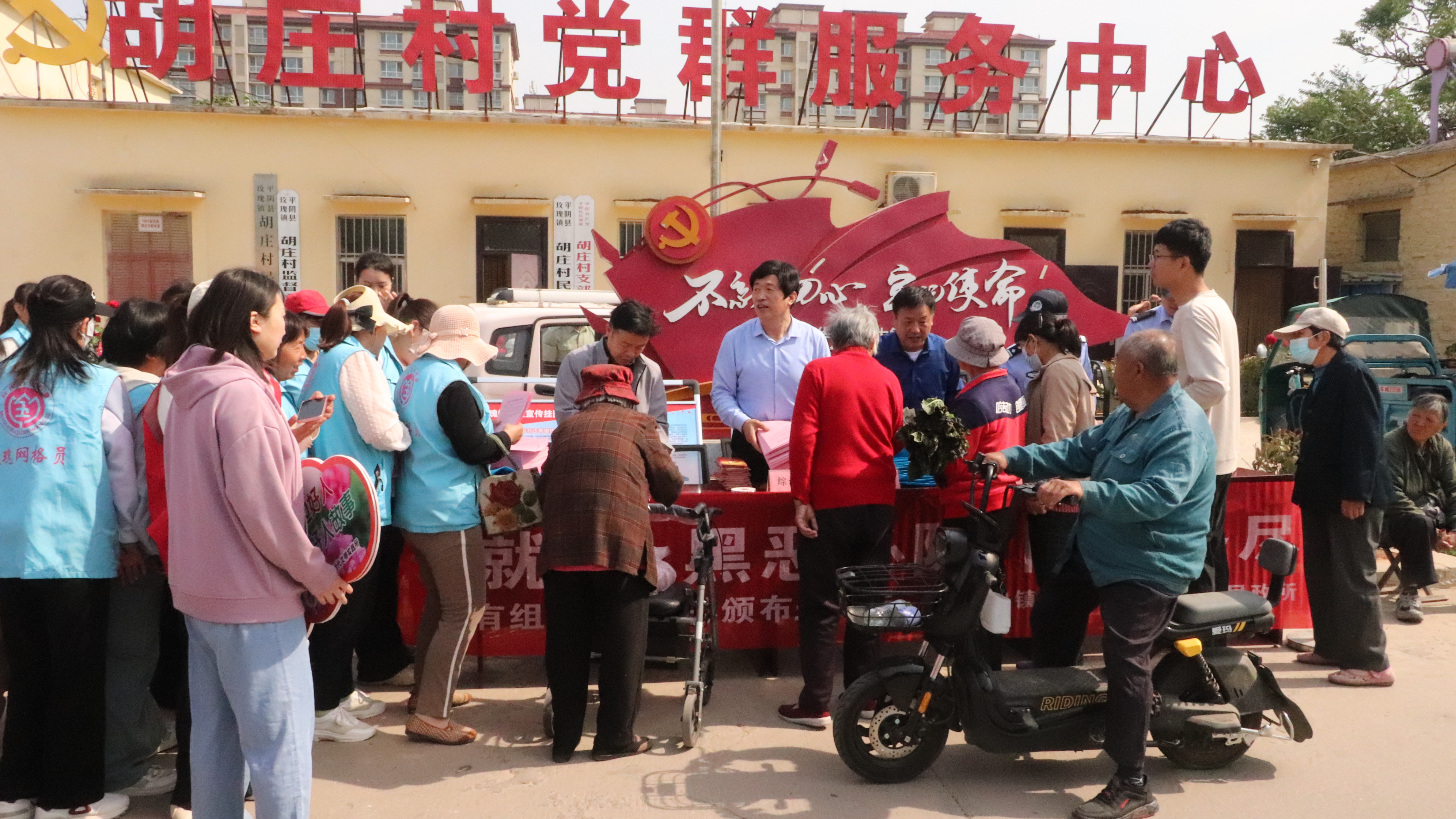 5月10日一大早,玫瑰镇胡庄村大集上,有关《中华人民共和国民法典》《中华人民共和国反有组织犯罪法》的标语、台位、展板、资料等已安排就位,由法律顾问、法学会成员、公安民警、网格员和志愿者组成的宣传队也已蓄势待发。