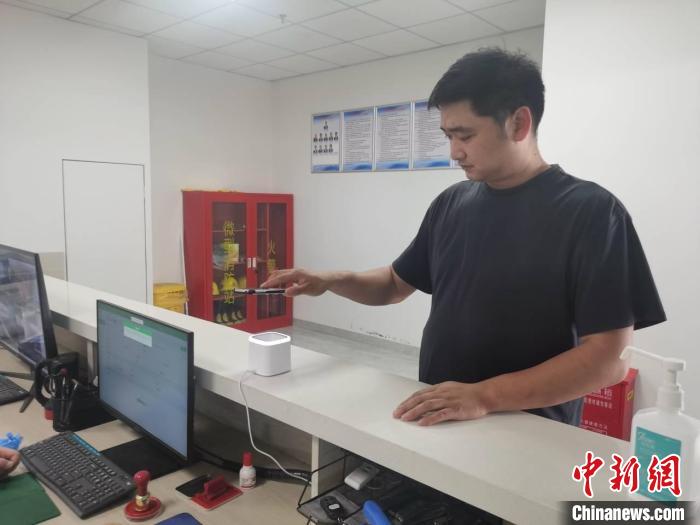 畜牧企业工作人员在上海叶新动物防疫监督检查站接受电子证明核验(浙江省农业农村厅供图)