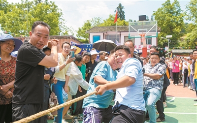 游客在大水乡后坝村参加乡村避暑季全民运动会 李光辉 摄
