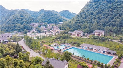 5月25日,走进百里杜鹃戛木管理区大堰村,国家3A级景区米底河绕村而过,青山相拥、碧水环绕、云朵如絮,海恩底度假村内,错落有致的民居散落于群山间。文化广场旁的泳池里,不少避暑游客在这里游泳、烧烤、唱歌,好不惬意。