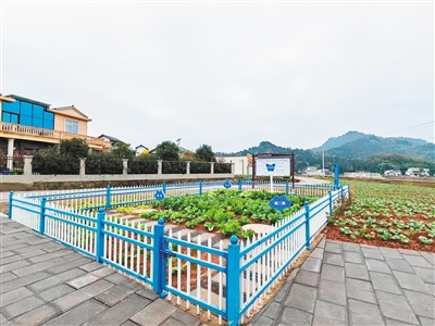 在四川省巴中市恩阳区海山村过街楼聚居点,道路旁的土地上,低低的栅栏圈起一小片农田,农田旁就近建起了格栅池和集中大三格化粪池。