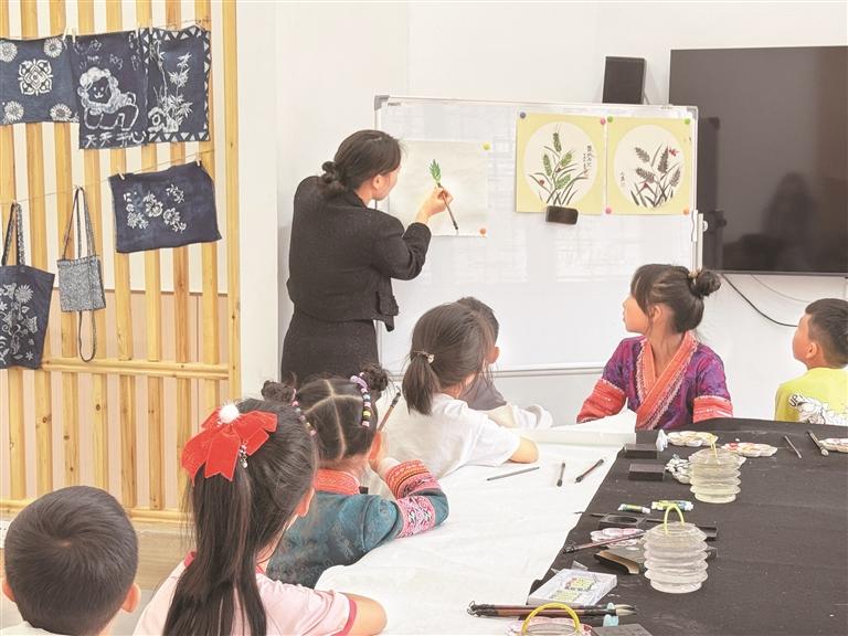与此同时,在省文联的统筹推动下,绘画与书法课也逐步开班。“其中,书法课深受家长们的青睐。”黄德泉说,“蒲公英”少儿艺术成长计划目前共开设6个班次,分别为尤克里里、吉他、芦笙、硬笔书法、毛笔书法、美术班,每个班每周上课时长不低于一个半小时,免费向三宝街道适龄儿童开放。