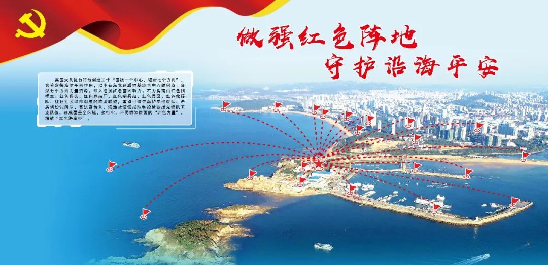 按照上级统一部署,坚持党政统领,聚力赋能融合,全面整合涉海职能部门、沿海社区、涉海行业组织和重点渔港码头的党建力量,以小石岛党建联盟中心为主阵地,分类建设红色指挥室、红色码头、红色养殖场、红色哨兵船队、红色景区、红色救援队和红色社区网格,初步形成了“中心辐射、七方协同”的红色元素矩阵,编织造就了一条井然有序的红色海岸带。