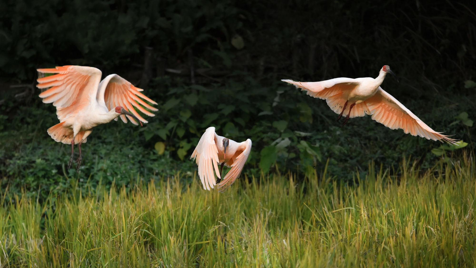 漠漠水田里,国宝朱鹮展翅飞翔 董长松 摄