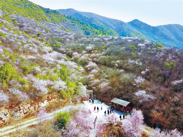 3月,游客在郑国渠旅游风景区观赏桃花(资料照片)