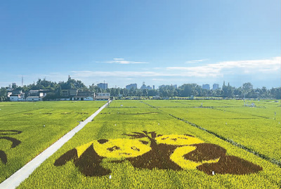 成都市温江区和林稻海以异色水稻种出的熊猫稻田画 记者 朱金宜 摄