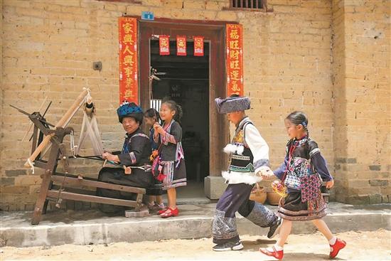 走进连山壮族瑶族自治县福堂镇太平村委会金龟村,近年打造的乡村文化空间——壮瑶传统风貌园一下子就惊艳了游客。在风貌园的锦绣非遗馆里,游客可以欣赏到上百件明清时期的珍贵壮锦藏品;在非遗工坊和研学基地里,游客可以参与研学,沉浸式体验壮锦的编织与文创;在染料种植科普园里,游客还可以与自然亲密接触,增长见识……