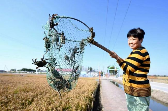 农户在曹妃甸区第四农场开展稻蟹立体种养