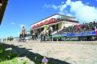 据了解,今年主办方从青海等地邀请了特色高原马种前来展示。活动现场,记者看到,骑手们身着民族服饰,英姿飒爽;骏马装饰五色绸带,跃跃欲试;观众扶老携幼,笑逐颜开。今年的赛马节还新增了马上刀术、马上乌尔朵、骑马射击、骑马拾哈达等四项赛马竞技活动。
