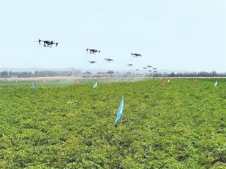 永昌县联联众力农机农民专业合作社正在进行无人机飞防作业 记者 马国顺