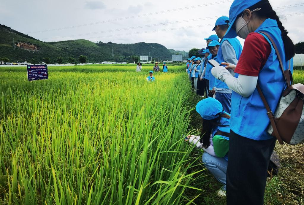 8月30日,农科人员在卧龙谷村“云恢290”种植基地观摩交流(受访者供图)