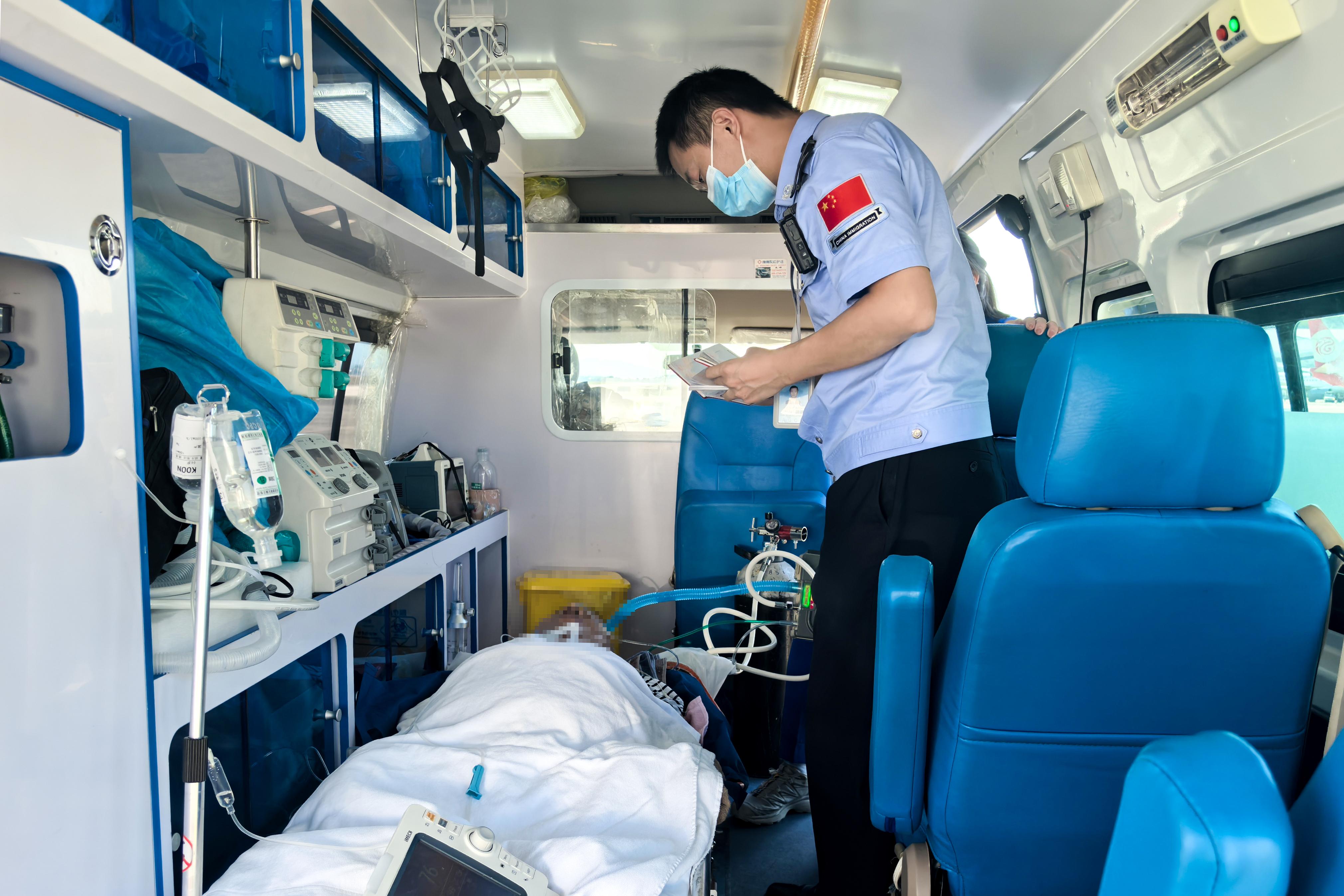 9月24日,张家界边检站民警在救护车上进行人证对照 李杰 摄