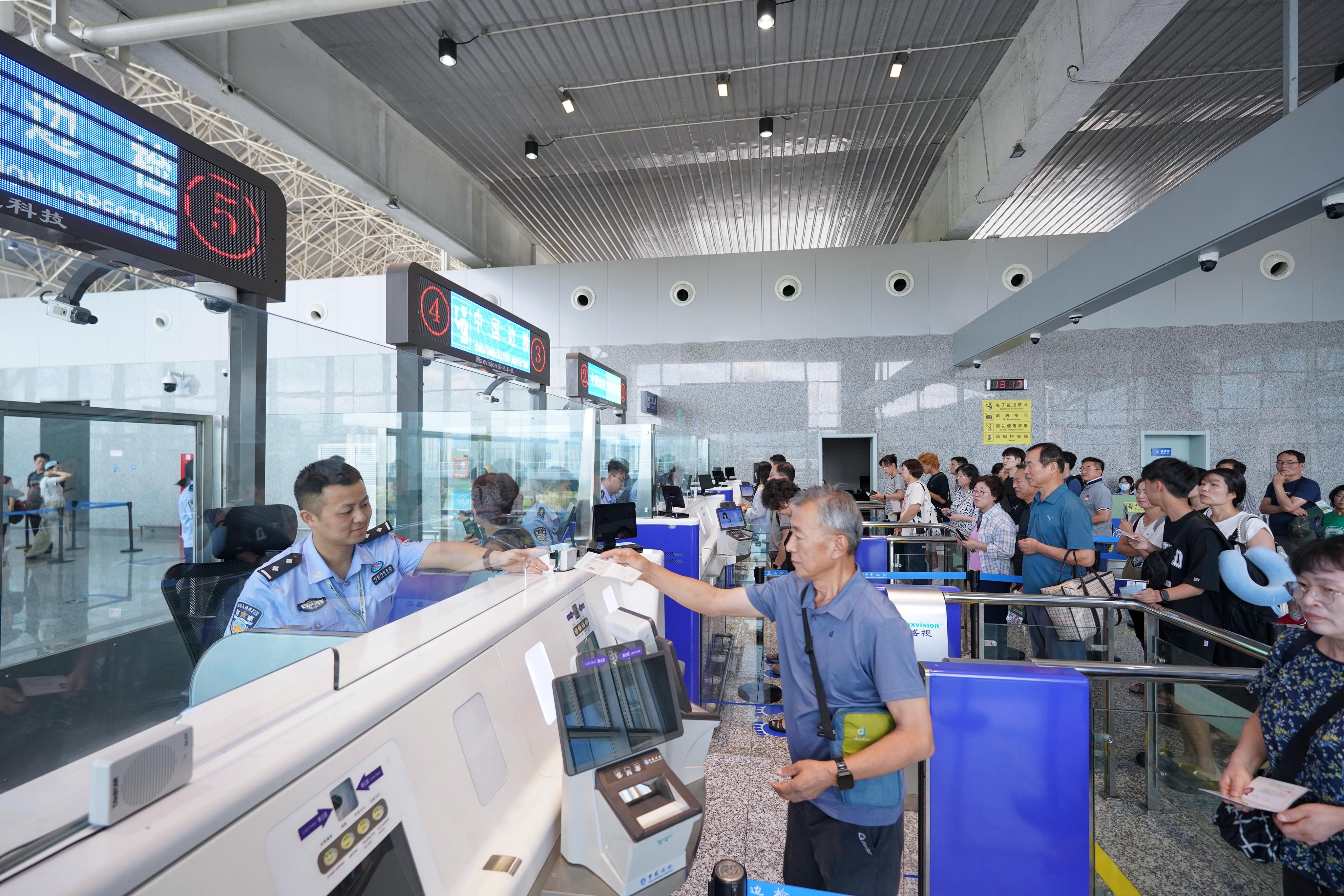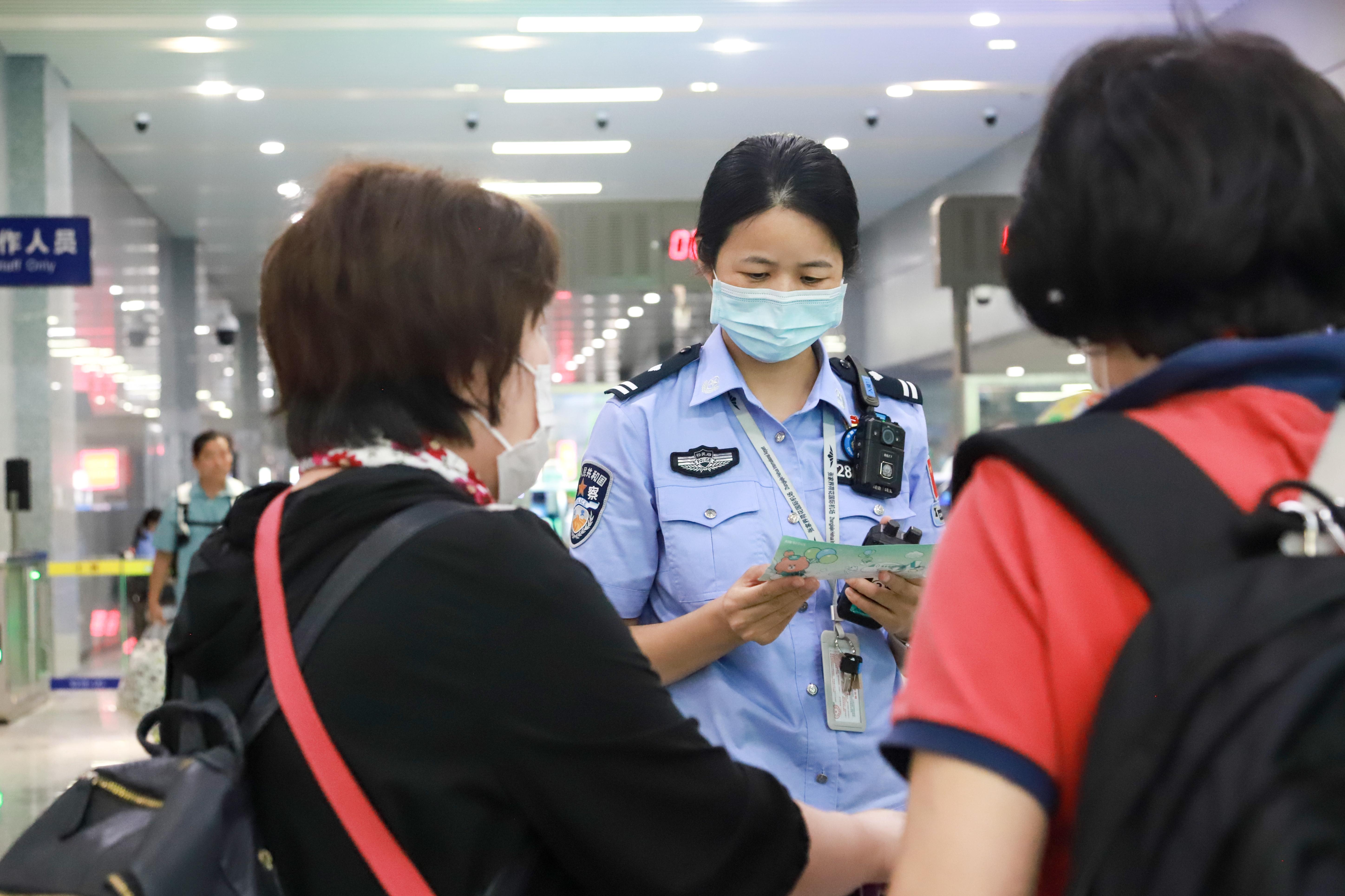 为展示中国形象、增进文明互鉴,在第26个世界旅游日(9月27日),湖南人民广播电台联合张家界市文旅局以及中国南方航空湖南分公司等单位,共同推出“世界旅游日,听见国际张”主题航班活动。担负本次主题航班活动边防检查任务的湖南省出入境边防检查总站张家界边检站,主动配合靠前服务,不仅提早启动相关工作预案,科学预测客流高峰及时段,同时滚动发布“两公布一提示”;细致为各旅行社提供边检业务顾问,实行24小时线上线下答疑解惑;并调整部署充足执勤警力,开足各类查验通道,加强旅客排队候检区域前训和人员分类引导,对有需要的旅客开展帮扶,保障口岸通关效率持续提升,让世界旅游城市张家界的绝美自然风情与出入境边检管理服务相结合,使远道而来的各国旅客自万米高空就开始知晓中国出入境政策和服务规则,也为旅客抵达口岸后快速通关奠定了厚实工作基础,受到主题活动举办单位和出入境旅客的一致赞颂。