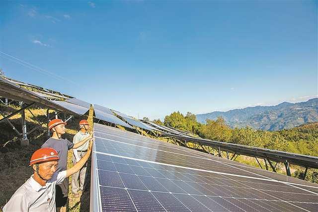 海拔1200米的重庆市奉节县石岗乡明水村,“蓝色海洋”一眼望不到边,鳞次栉比的光伏发电板反射着太阳光如同湖面的粼粼波光;丰都县江池镇,方斗山与七曜山脉的交会处,45台巨型风机如同列阵战场的士兵,在青葱连绵的山峰上巍然耸立……