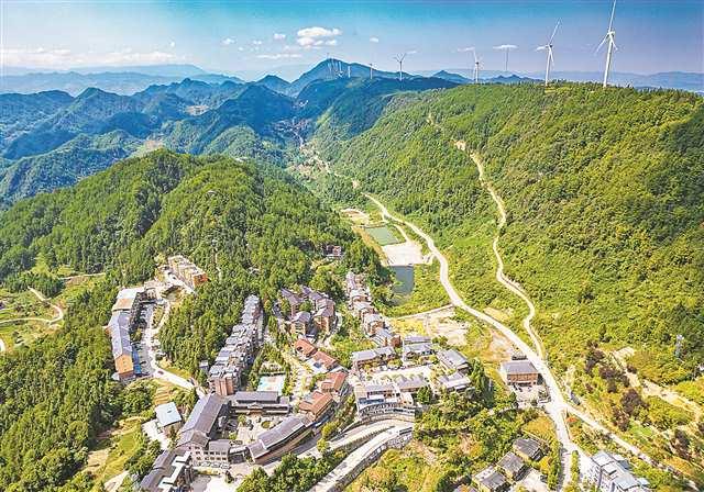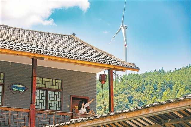 8月30日,丰都县横梁镇江池村,高耸的白色风车为村里新添了一道风景线 记者 尹诗语 摄