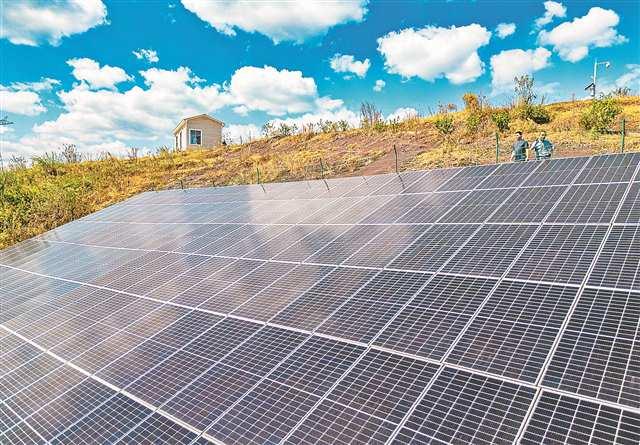 记者在现场看到,光伏发电板离地两米来高,为种植喜阴作物提供了条件。“我们准备种一些黄精、白芪、黄豆,以‘板上发电、板下种植’来实现土地资源的双重利用。”罗同坤说。