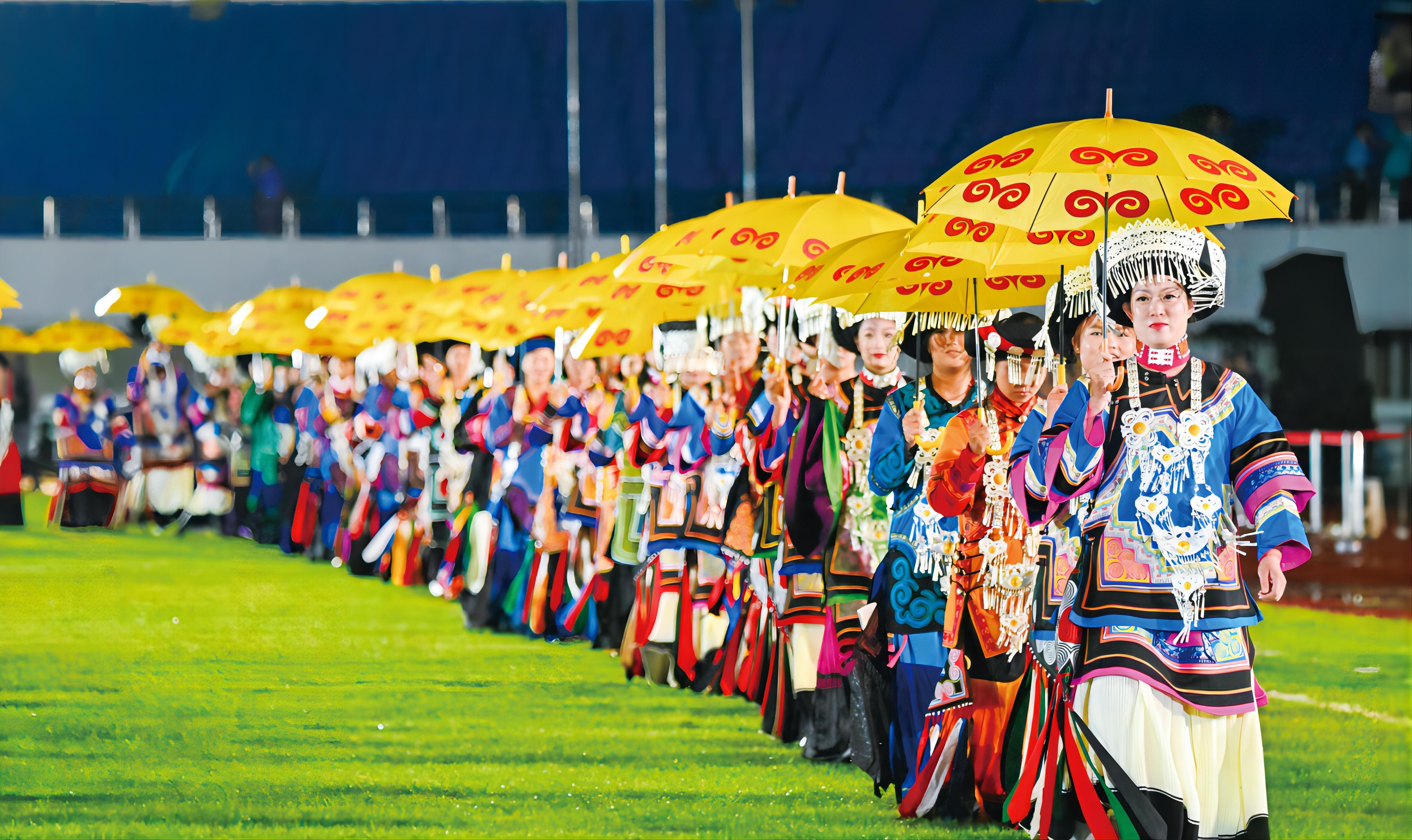 抖音足球嘉年华现场彝族服饰展演(西昌市文化广播电视和旅游局供图)