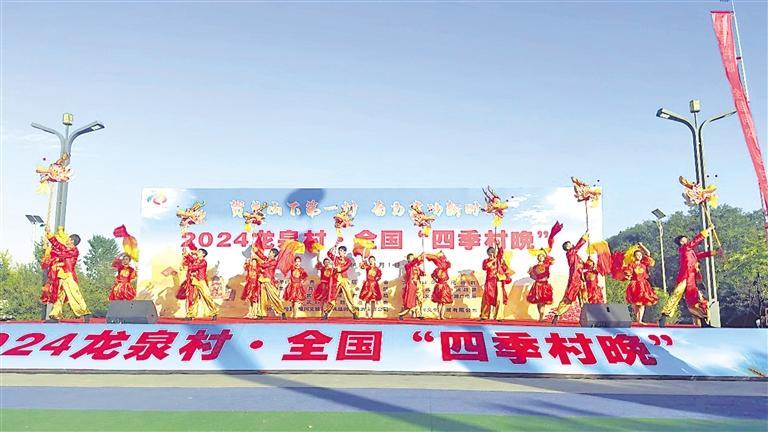 “村晚”活动丰富多彩,丰收节开幕式、农产品展示与展销、农耕文化展示、村民趣味运动会等环节精彩纷呈。走进龙泉村,金黄的稻田在微风中轻轻摇曳,仿佛金色的波浪;丰硕的果园散发着诱人的香气,令人垂涎欲滴,勾勒出一幅宁静美好的乡村画卷。在农产品展示与展销活动中,专门设置的展示区里,农民专业合作社、家庭农场、农产品加工企业等纷纷参展,各类农产品及特色农副产品琳琅满目,让人目不暇接。农产品品鉴活动更是让游客大饱口福,农耕文化展示区则让人仿佛穿越时空。村民趣味运动会充满欢声笑语,拔河比赛、接力赛跑、农产品搬运等项目,让村民在比赛中增进了感情。