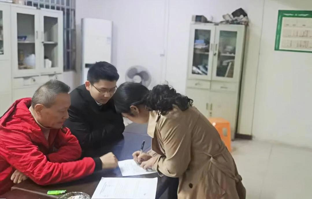在征得双方当事人同意后,法庭对该案进行了诉前调解。经调解员与当事人多次沟通交流,耐心对业主进行释法明理,最终该业主同意缴纳物业费用,物业公司也表示放弃要求业主支付违约金,业主与物业公司达成一致意见。但由于该业主近期工作繁忙,无法前往法庭进行调解确认,为不影响业主工作,经与双方当事人协商后,桑海法庭决定前往业主居住的小区进行调解确认。