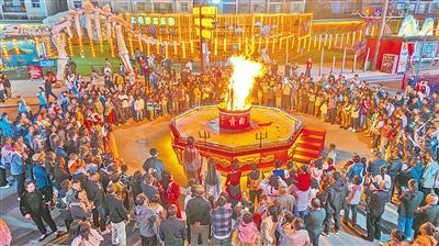 10月3日晚,游客在郧阳“武当不夜城”观看篝火晚会 通讯员 郧宣 摄