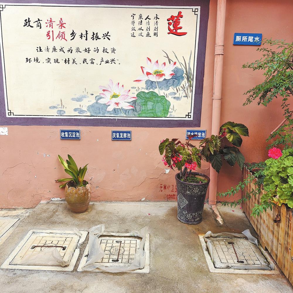 牌坊村村民吴丽萍向记者演示了当地农户如何做到“四水全收”:餐厨废水、洗涤废水、养殖废水和厕所洗浴废水合称“四水”,其中餐厨、洗涤、洗浴等“灰水”被接入沉淀池,厕所和圈舍的“黑水”接入化粪池,两股水合流进入厌氧发酵池。“在农户的沉淀池、化粪池和发酵池‘小三格’中,就能解决问题。一般4至6人的农户建2立方米的池子就够了。”高平村委会主任李海伟告诉记者,污水经过沉淀处理后由村主管网统一收集,纳入村里的“大三格”进行生态氧化处理,不仅解决了污水滥流的问题,还能将污水变成还田肥水。2021年以来,高平村累计建设污水处理“小三格”645个、“大三格”36个。经过净化的污水达到农业灌溉用水标准,既造福田地、滋养青山,又一定程度上缓解了农村林田灌溉用水压力。