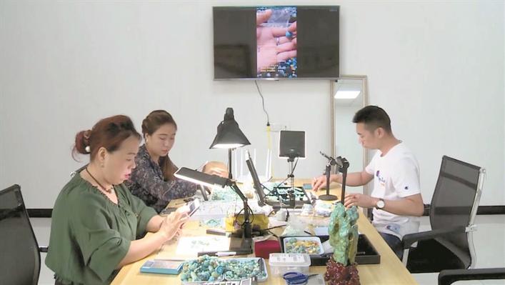 网上直播售卖绿松石 通讯员 王霞 摄