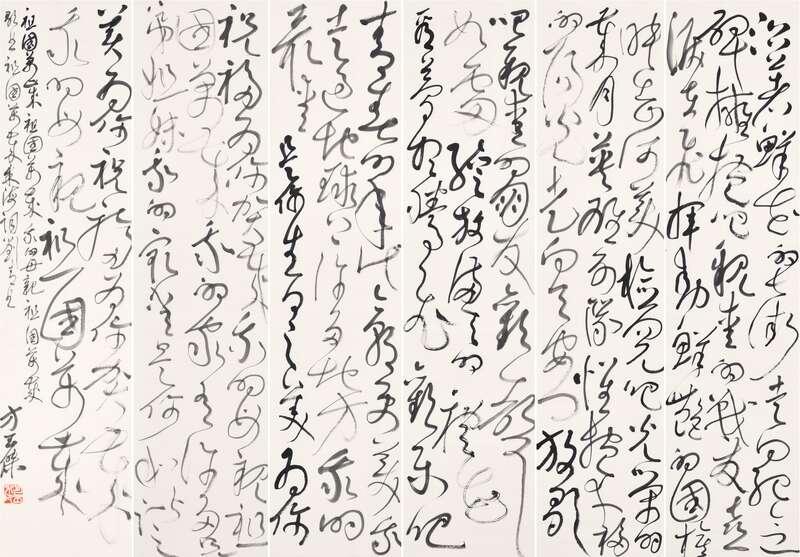 展览作品《祖国万岁》朱海 词 刘青 曲 大草灰宣六条屏-230cm×54cm×6(主办方供图)