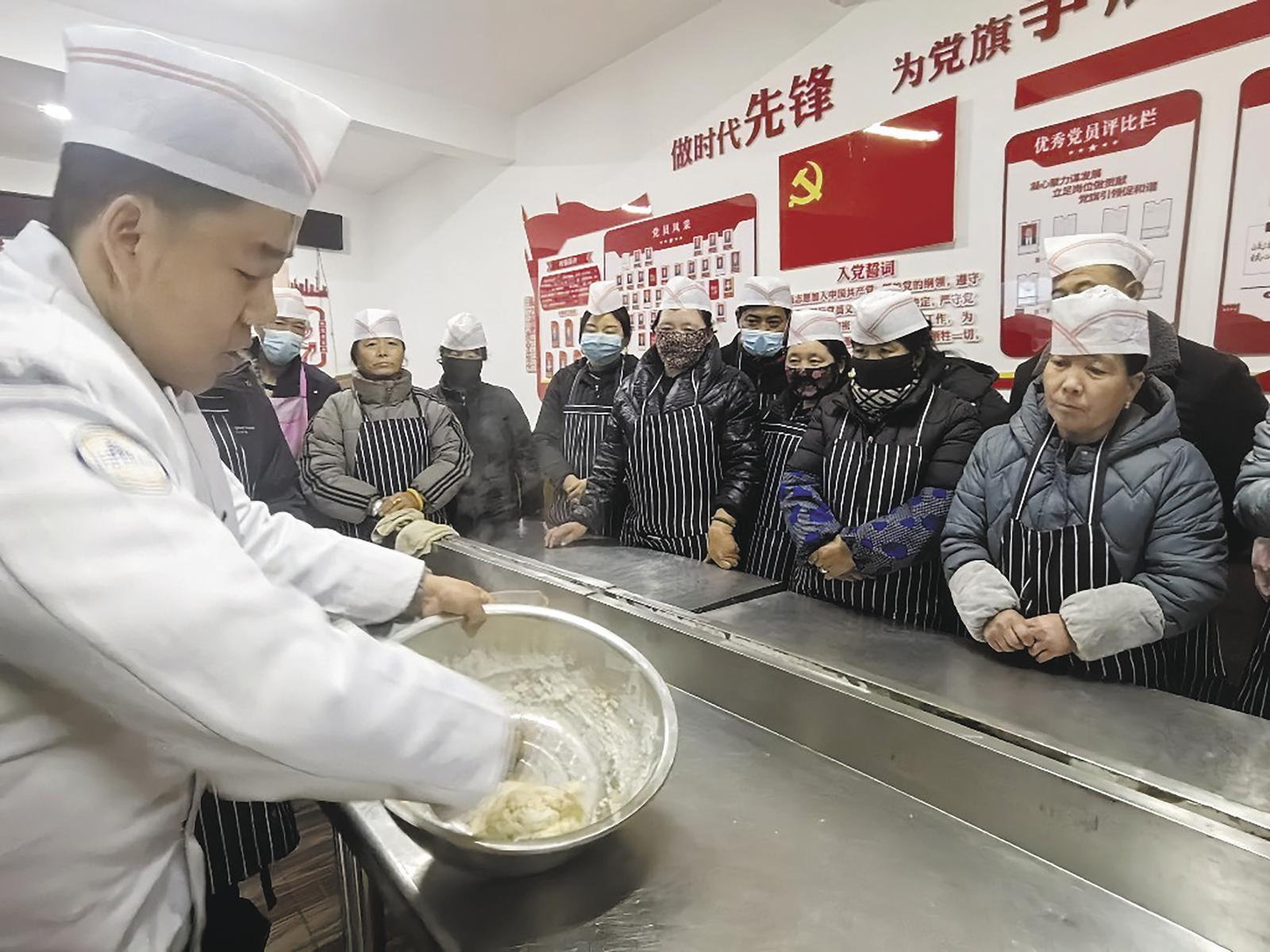 “前两天学习了香煎玉米饼、香菇馒头的制作方法,今晚又学了家常油饼、棉花杯的做法,培训确实有收获……”38岁的华毛措,是村里的精准扶贫户。多年来,她一直在家照顾两个孩子,丈夫是一名司机,经济收入微薄。“听说这两天村里有免费面点制作技能培训班,我就赶紧报了名。我想学成之后,一来改善自家的餐桌,二来提高自己的能力,增加就业的底气。”培训过程中,华毛措认真地做好笔记,踊跃地提问交流,积极参与实操练习,掌握了一技之长,增加了奔向新生活的信心和底气。