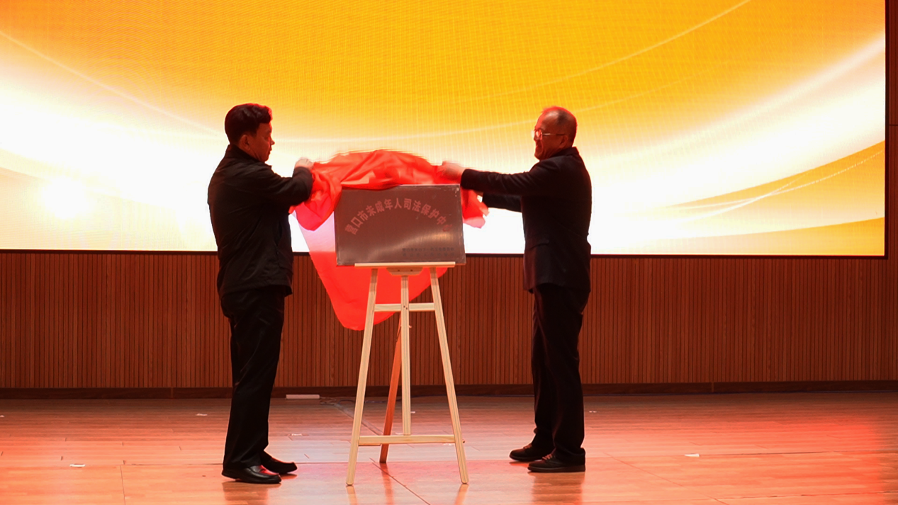 市人民检察院党组副书记、分管日常工作的副检察长高兵与市关工委主任王静春共同为营口市未成年人司法保护中心揭牌。