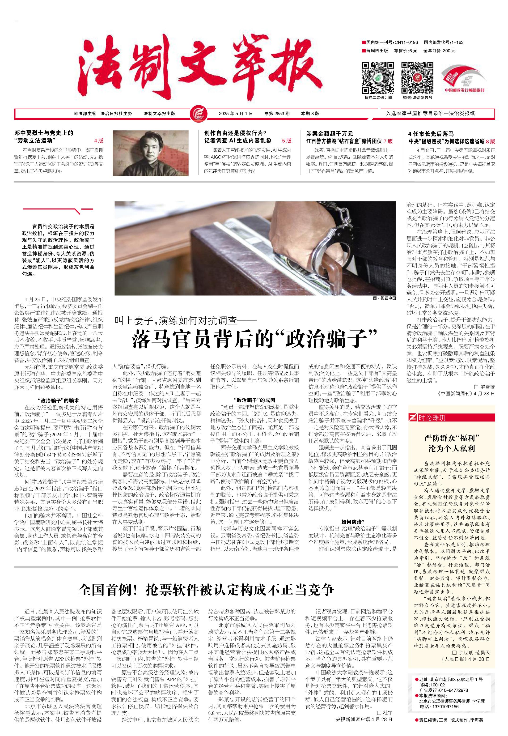 2025年5月1日《法制文萃报》总第2853期1版