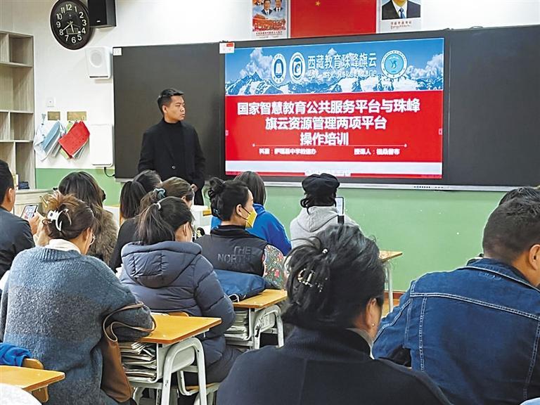 21所教育信息化示范校依托两个平台,以不同方式更新优质课程、教学案例、数字图书等教育资源,成为乡村教师的“云端加油站”。在“云端课堂”上,援藏教师带头开展公开课及骨干教师示范课已成常态;部分示范校每月上传的优质教学资源,成了乡村教师备课的“百宝箱”;示范校与结对校共同观看区外专家的教材解读讲座,让乡村教师紧跟教学改革步伐……这些原本局限于城市校园的资源,通过光纤穿越雪山峡谷,播洒在乡村课堂。