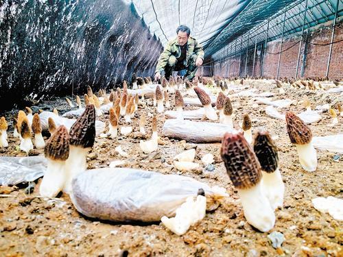 4月16日,丰宁满族自治县汤河乡料坡道村村民正在采收羊肚菌。记者 陈宝云 摄