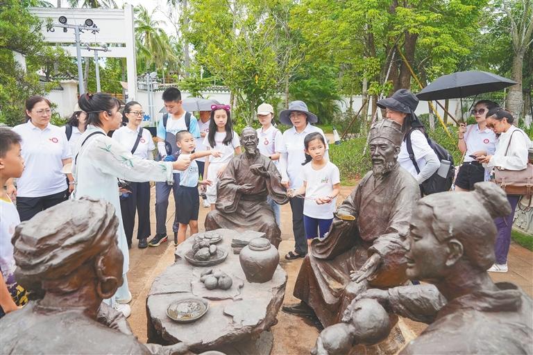 7月9日,位于海南省儋州市中和镇的东坡书院,许多游客兴致勃勃地观展览、听讲解、购文创。相比以往单纯地漫步游览,现在的东坡书院有了许多“新玩法”,文创开发、沉浸式演艺等文旅融合发展新模式为古朴的景区增添了吸引力。