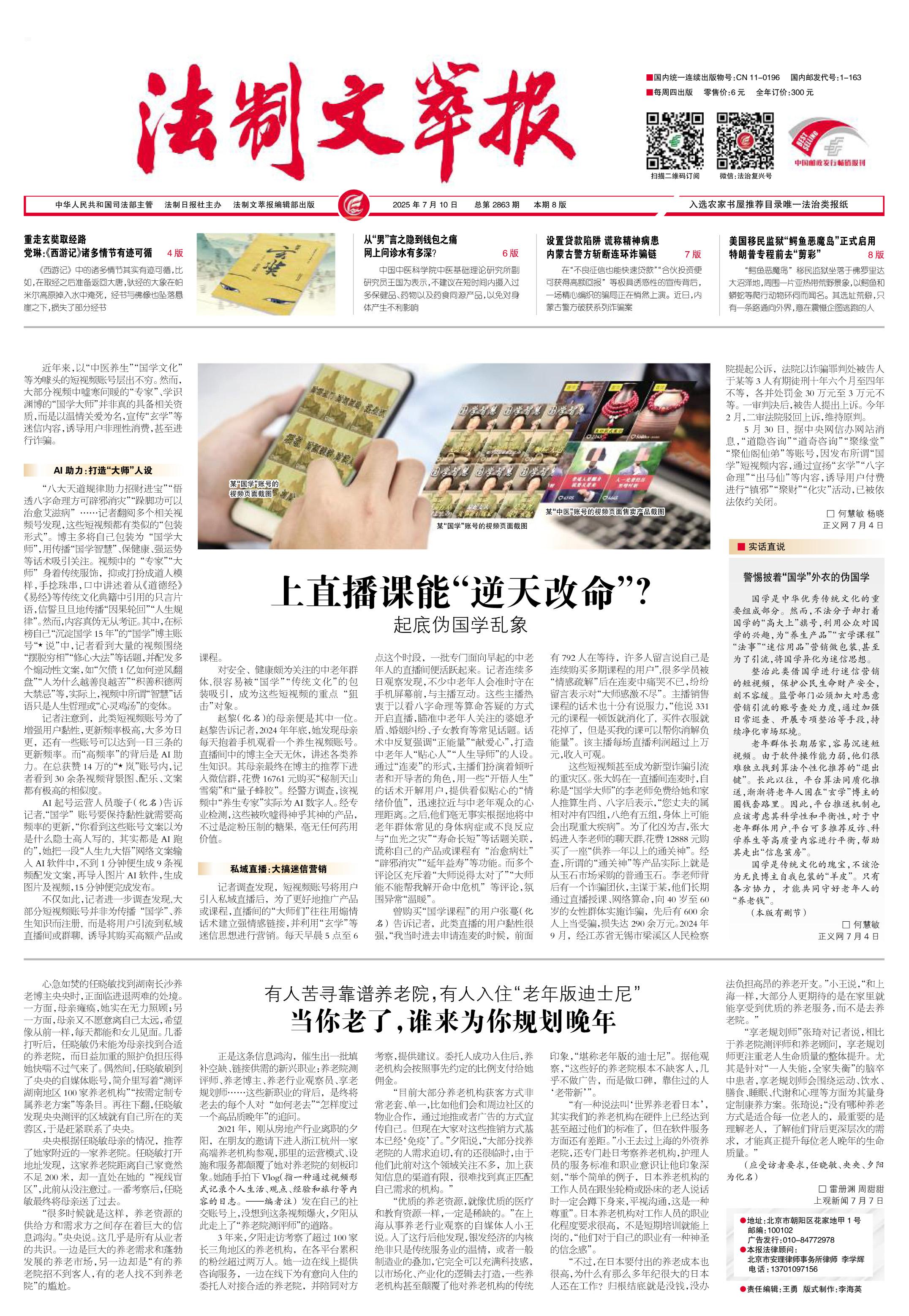 2025年7月10日《法制文萃报》总第2863期1版